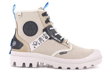 Inspired by the characters from the game, the Pallashock Witch Queen has been designed with a heavy cotton canvas upper, mixed with nylon and leather details and blue webbing details—bringing defining elements of The Witch Queen universe to life.