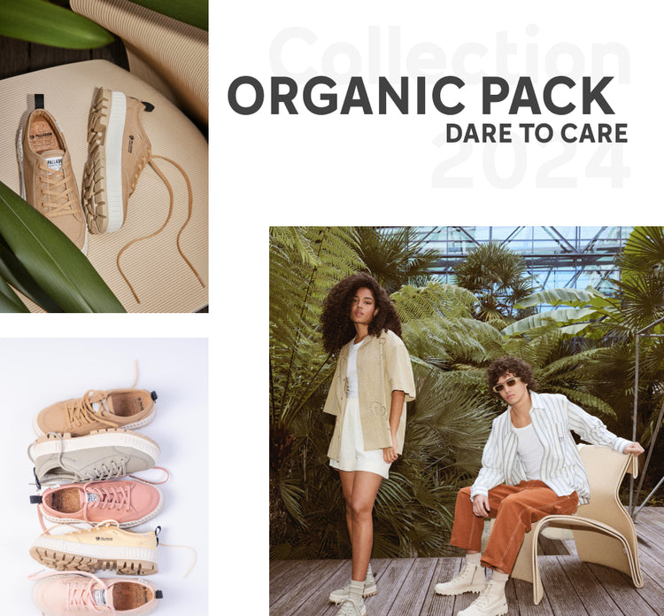 A strong, positive commitment to future generations, Palladium’s SS24 Dare To Care organic capsule collection reinforces the footwear brand’s longstanding environmental credentials. Two unisex styles, Pallashock Org and Pampa Hi Zip Org, use certified organic cotton and recycled rubber outsoles, linings and sockliners.