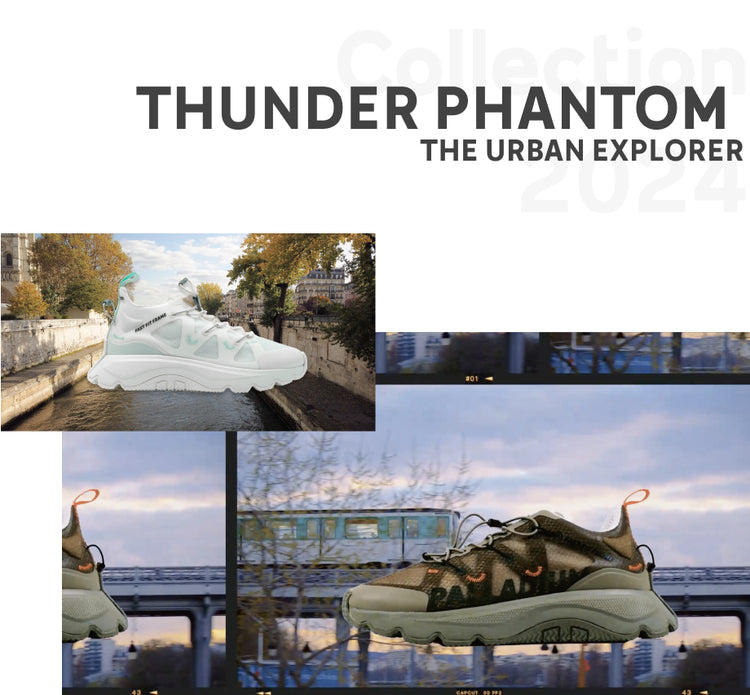 Urban sneaker style, Thunder Lite Phantom, for men and women, is a dynamic and futuristic sports shoe with a nylon techno upper reinforced by sleek hot melt TPU counterparts. The back cuff adds comfort and protection, while the sporty fast-lacing toggles ensure practicality and easy on-and-off. Enduring strength meets modern design.