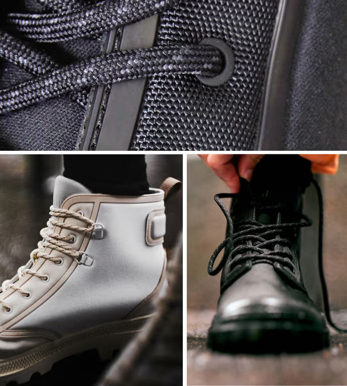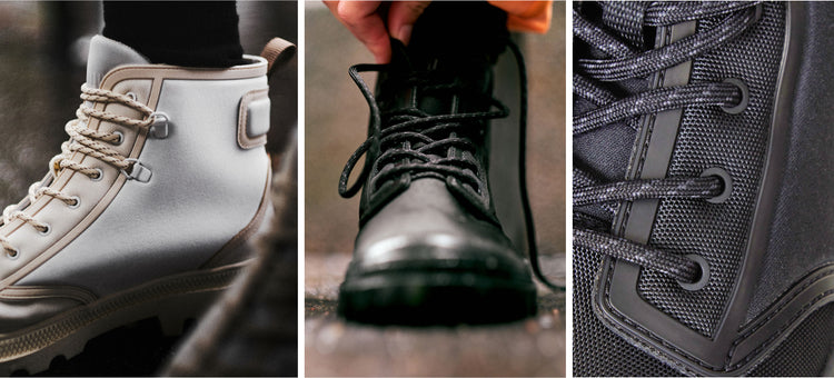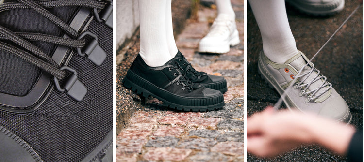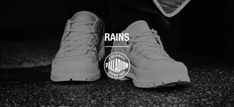 Be ready for adventure. Palladium x Rains take the Pallashock to new heights. The chunky sole makes them perfect for exploring the rugged outdoors and the clean Scandinavian designs provide that ultimate blend between simplicity and functionality.