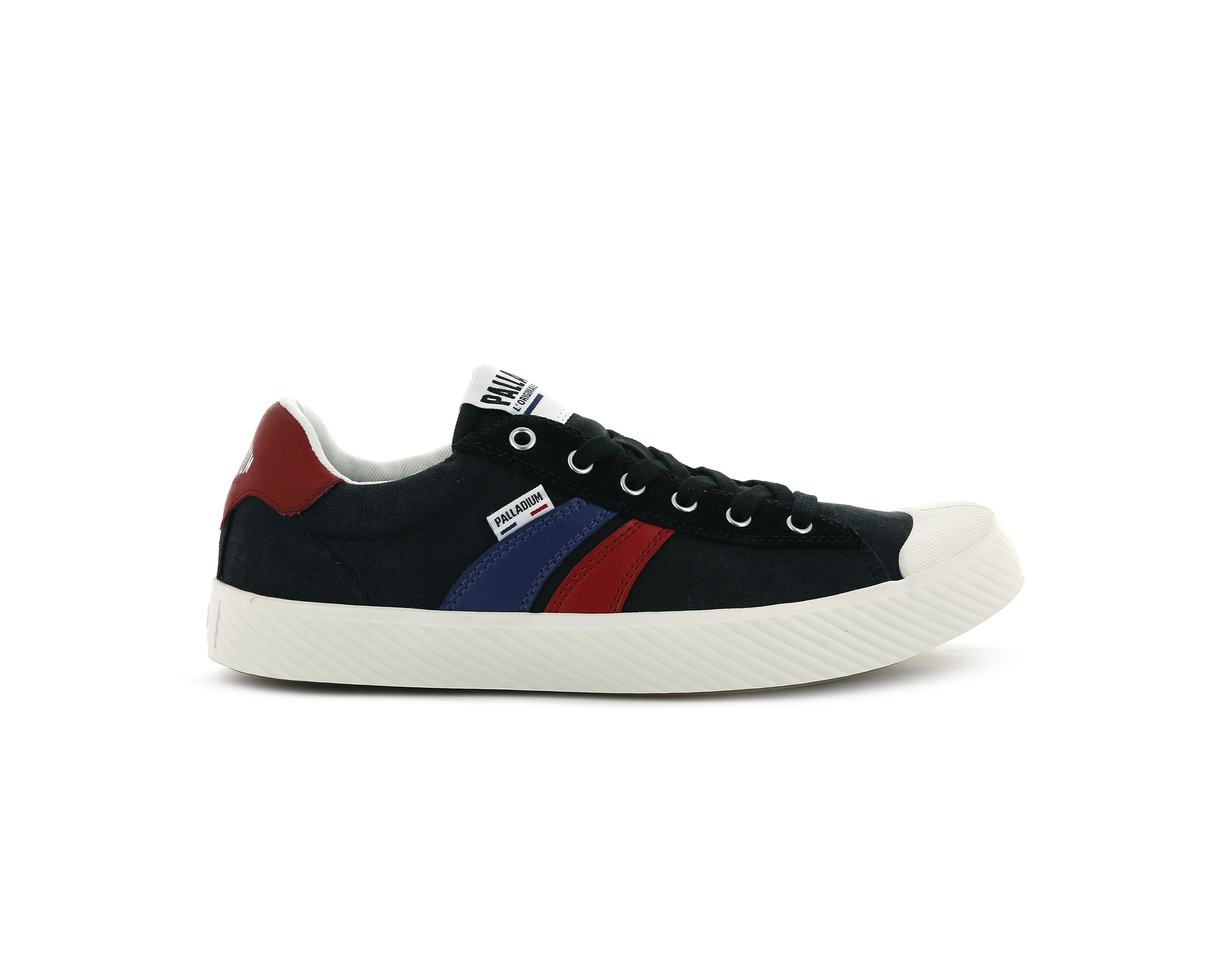 Ce modèle sportif Palladium classique débarque dans les rues. La flamme iconique de ces baskets à tige basse en toile souple s’accompagne d'un renfort d'œillets en suède pour un look rétro.