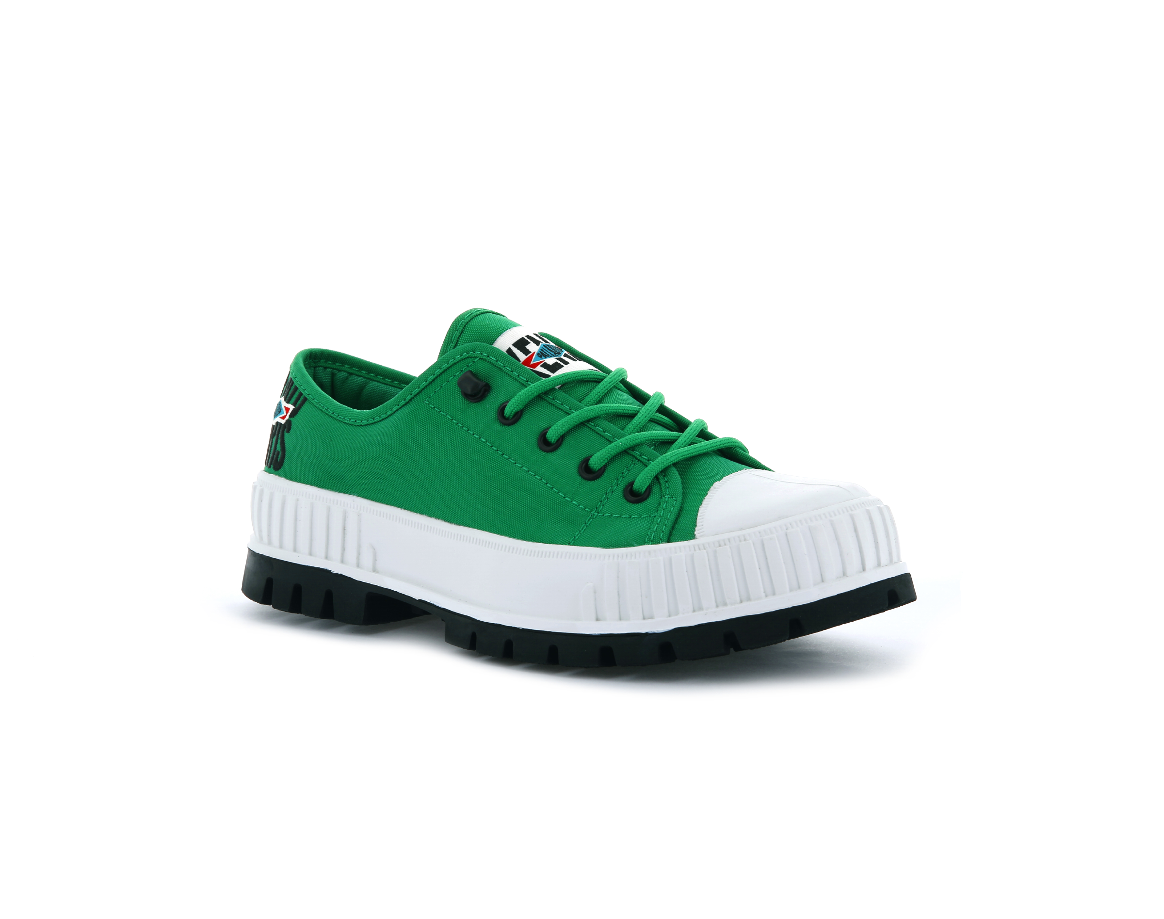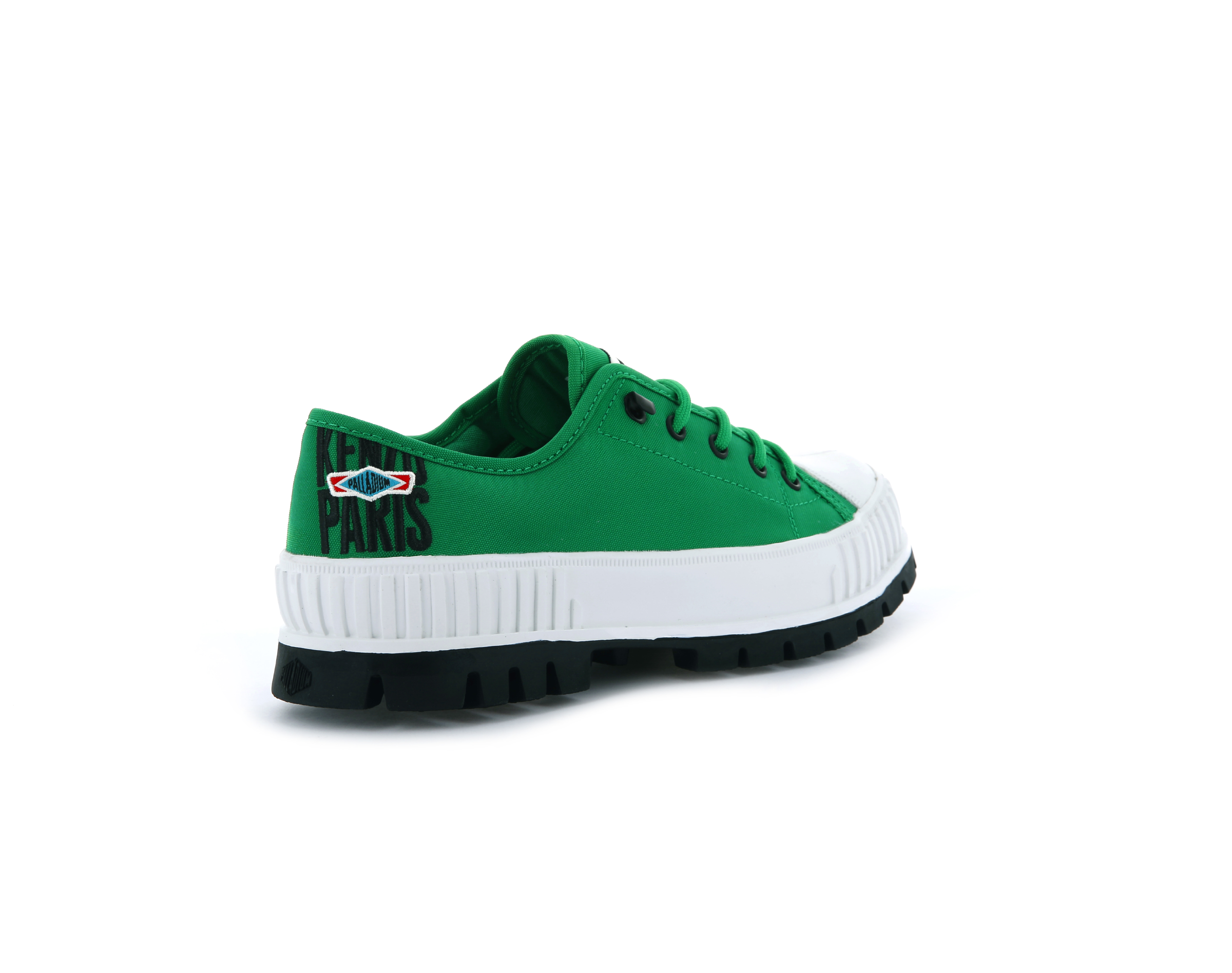 Aujourd'hui, cette dernière édition porte définitivement la patte KENZO : sa tige basse en nylon est ornée du logo KENZO X PALLADIUM.