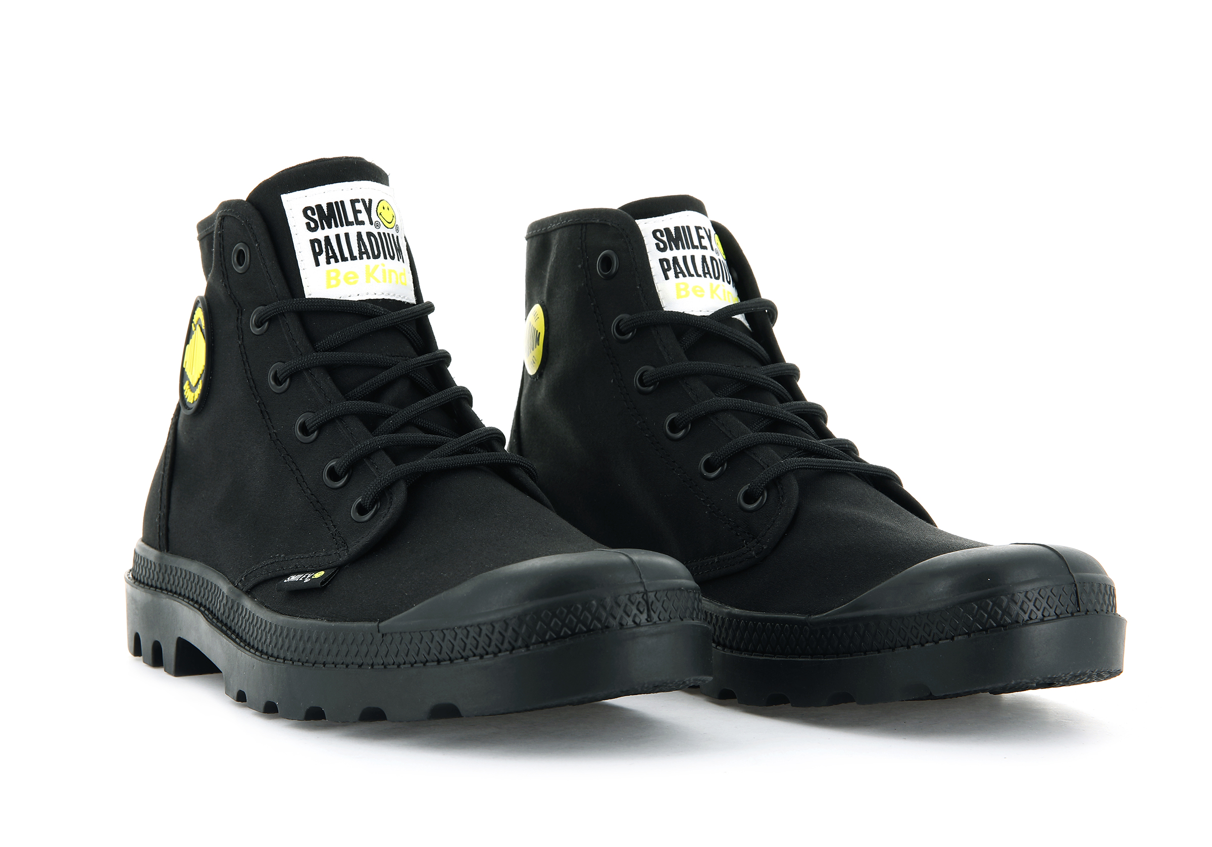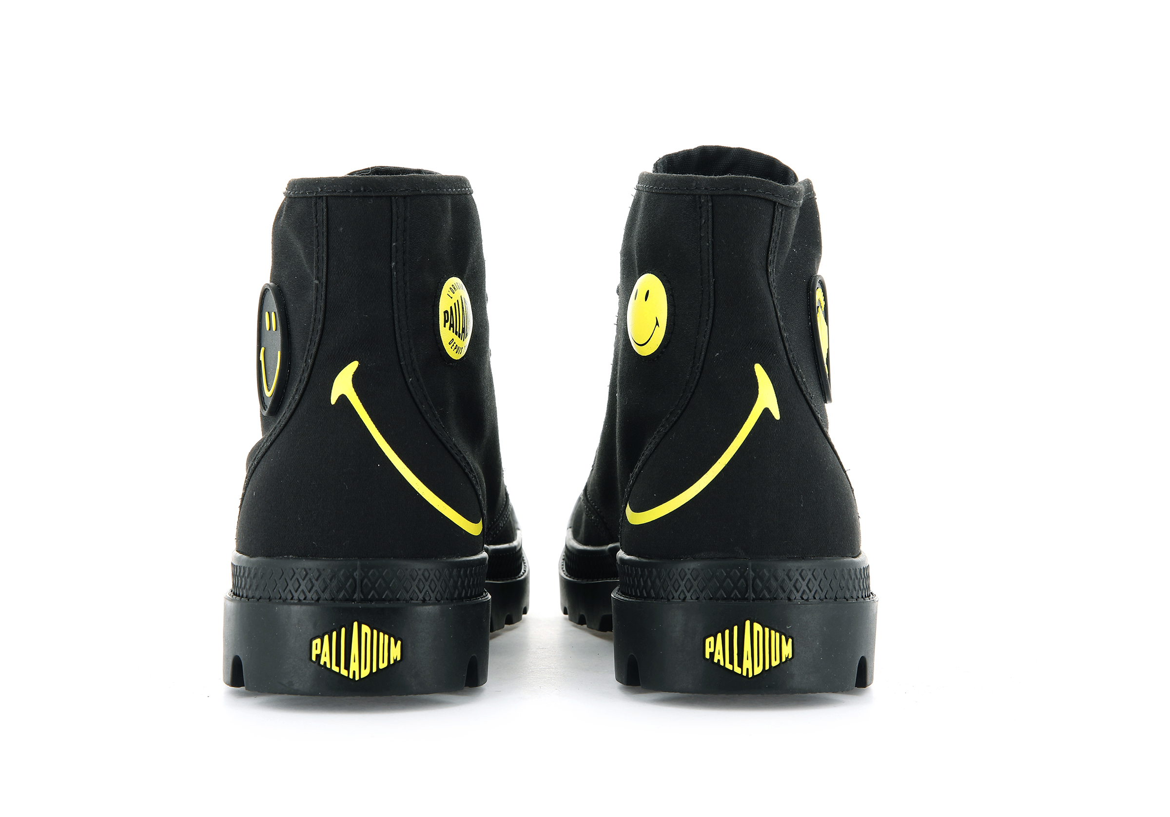 Le sourire est contagieux, il permet d’initier une vague d’optimisme. Voilà l’objectif que se sont donné Palladium et The Smiley Company créée en 1972, au début de notre collaboration. Avec ce nouveau modèle Pampa x Smiley qui respire la bonne humeur, faites passer le message à ceux qui vous entourent partout où vous allez. Un concentré de qualité, marque de fabrique de Palladium, et de positivité. Souriez !