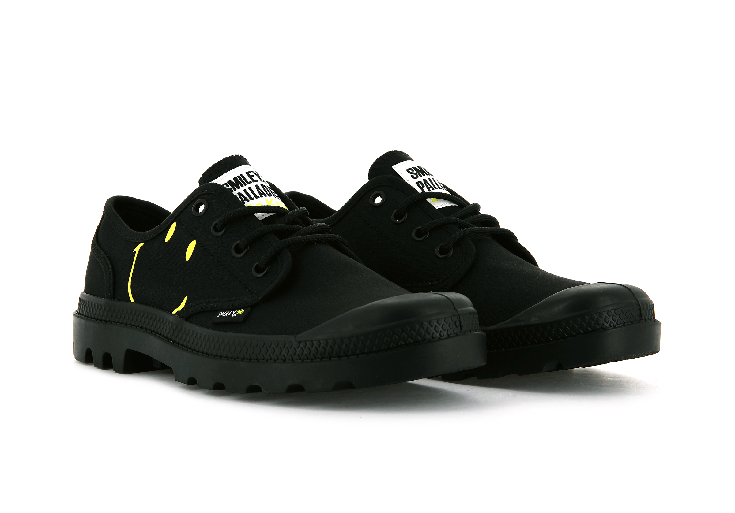 Le sourire est contagieux, il permet d’initier une vague d’optimisme. Voilà l’objectif que se sont donné Palladium et The Smiley Company créée en 1972, au début de notre collaboration. Avec ce nouveau modèle Pampa Oxford x Smiley qui respire la bonne humeur, faites passer le message à ceux qui vous entourent partout où vous allez. Un concentré de qualité, marque de fabrique de Palladium, et de positivité. Souriez !