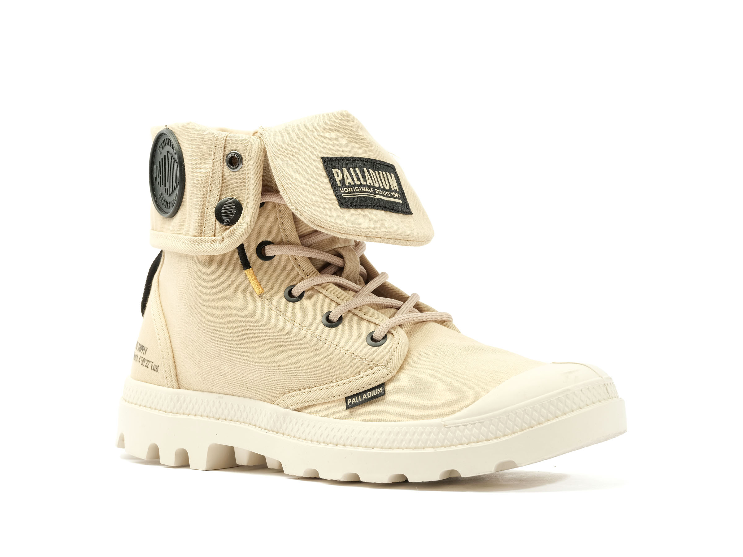 Channeling the distinctive utilitarian detailing of our Supply line, this version of the iconic Pampa Baggy ticks all the boxes for chic urban footwear. Its soft cotton canvas upper (OEKO-TEX certified) has a versatile fold-over collar that can be worn up or down, and Palladium’s signature molded rubber outsole makes it ideal for trekking the city streets and beyond.