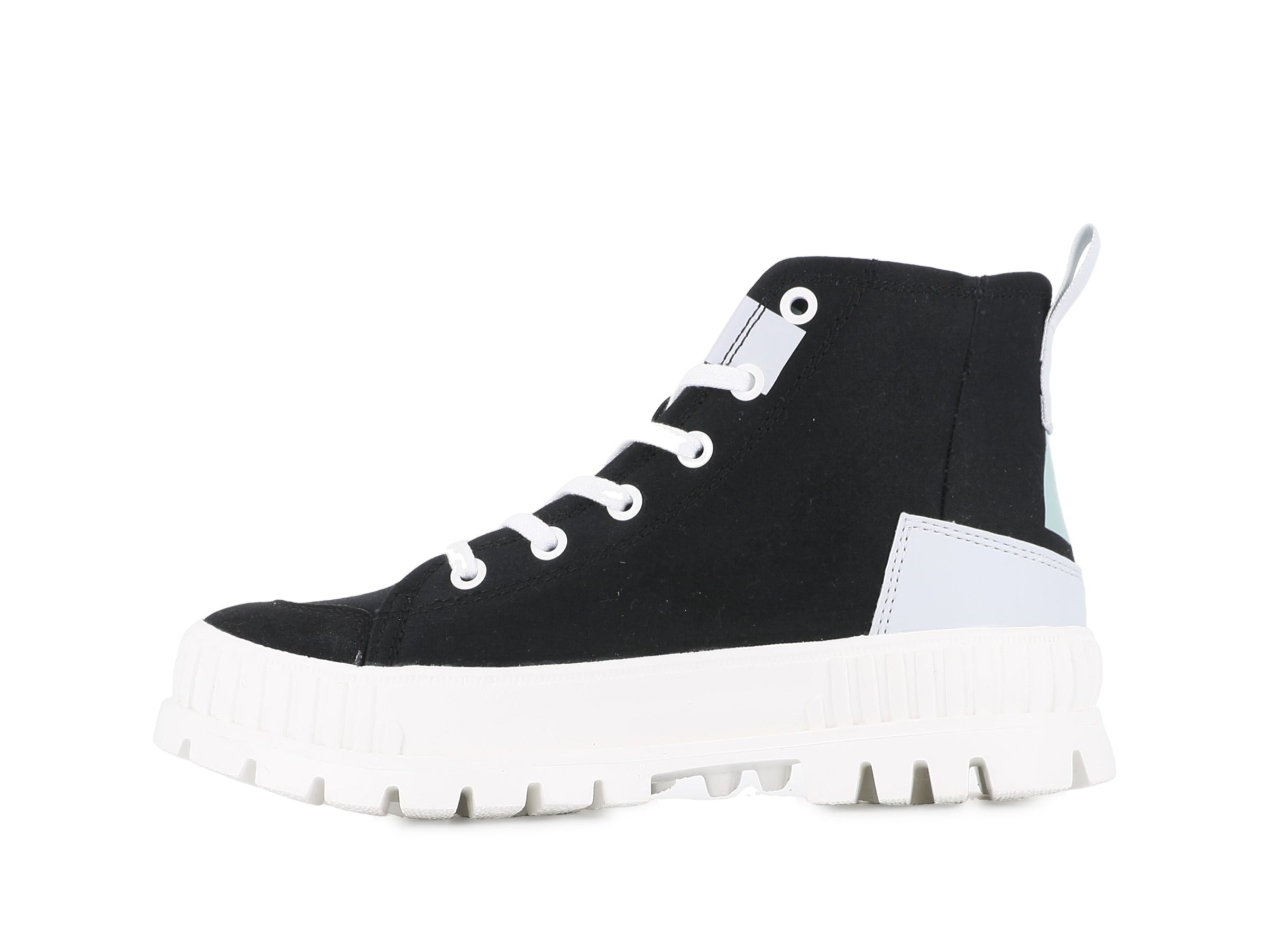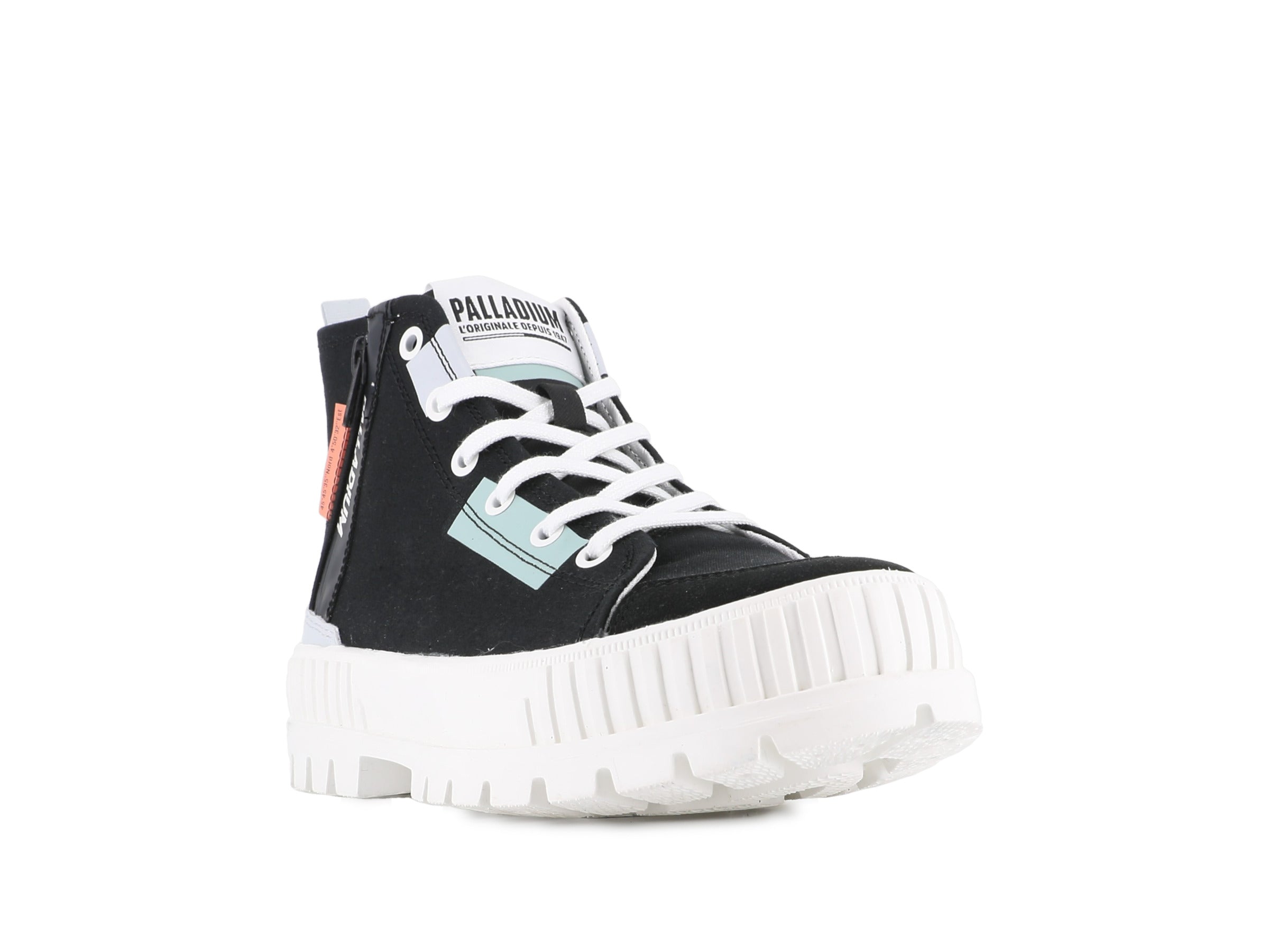The Pallashock Backzip 2 is a feminine high-top sneaker that brings a subtle sportswear touch to a timeless design. Crafted with a classic moleskin canvas base and suede accents on the toe, it offers a stylish blend of texture and durability. Playful prints, contrasting overlays, and a convenient zip on the outside add a modern flair and ease of wear. Exclusively designed for women, this sneaker effortlessly combines fashion and function for everyday versatility.
