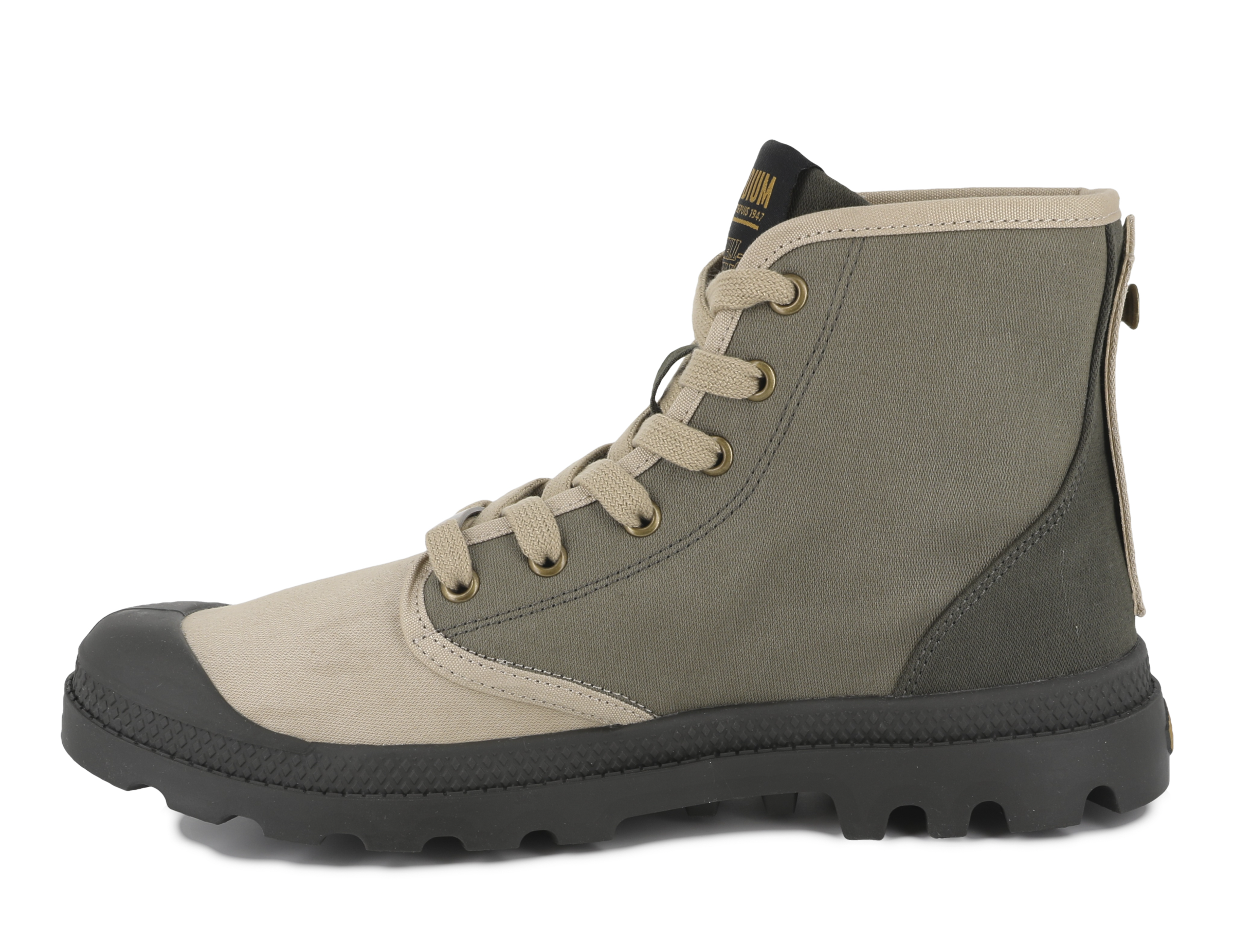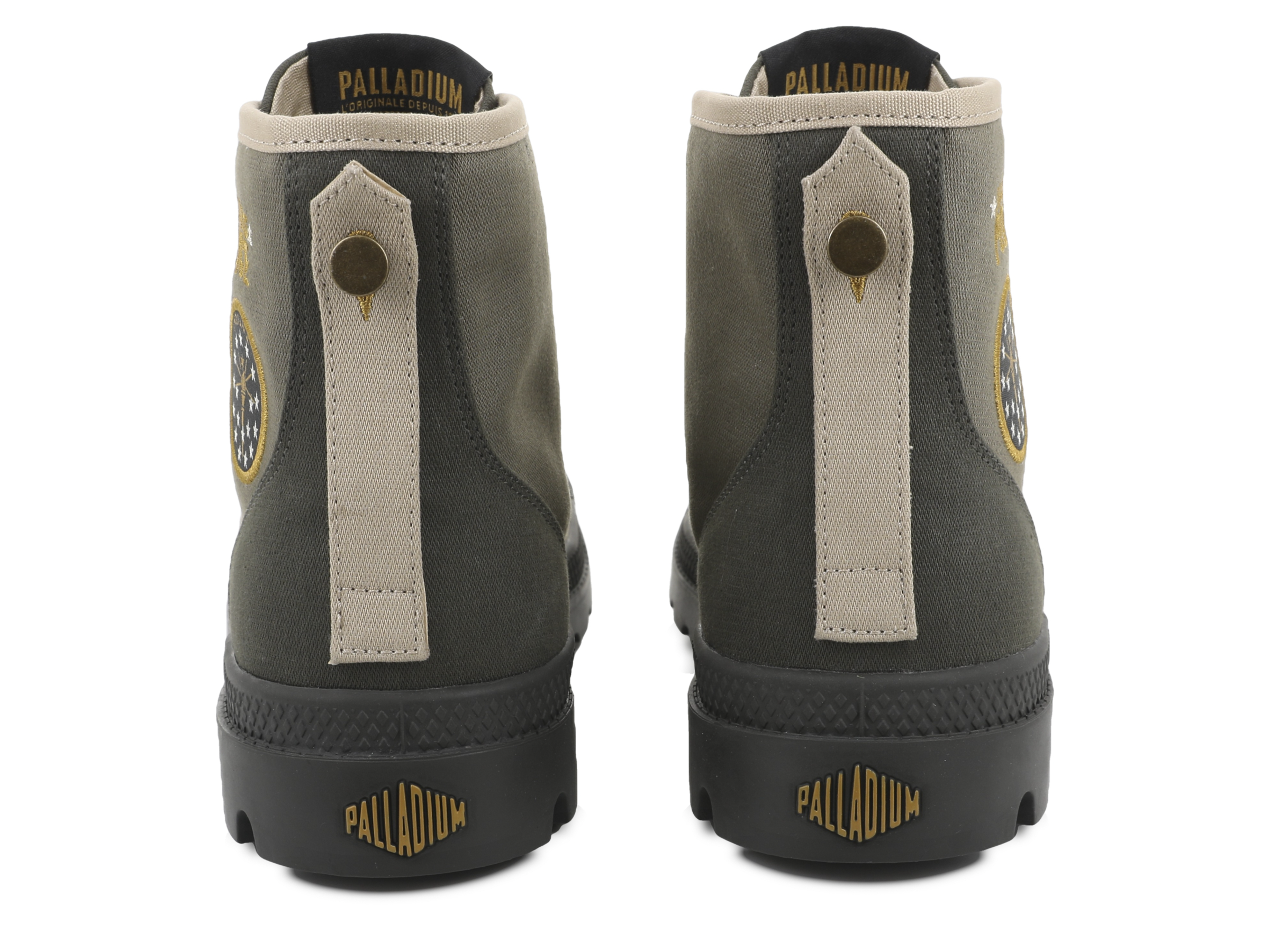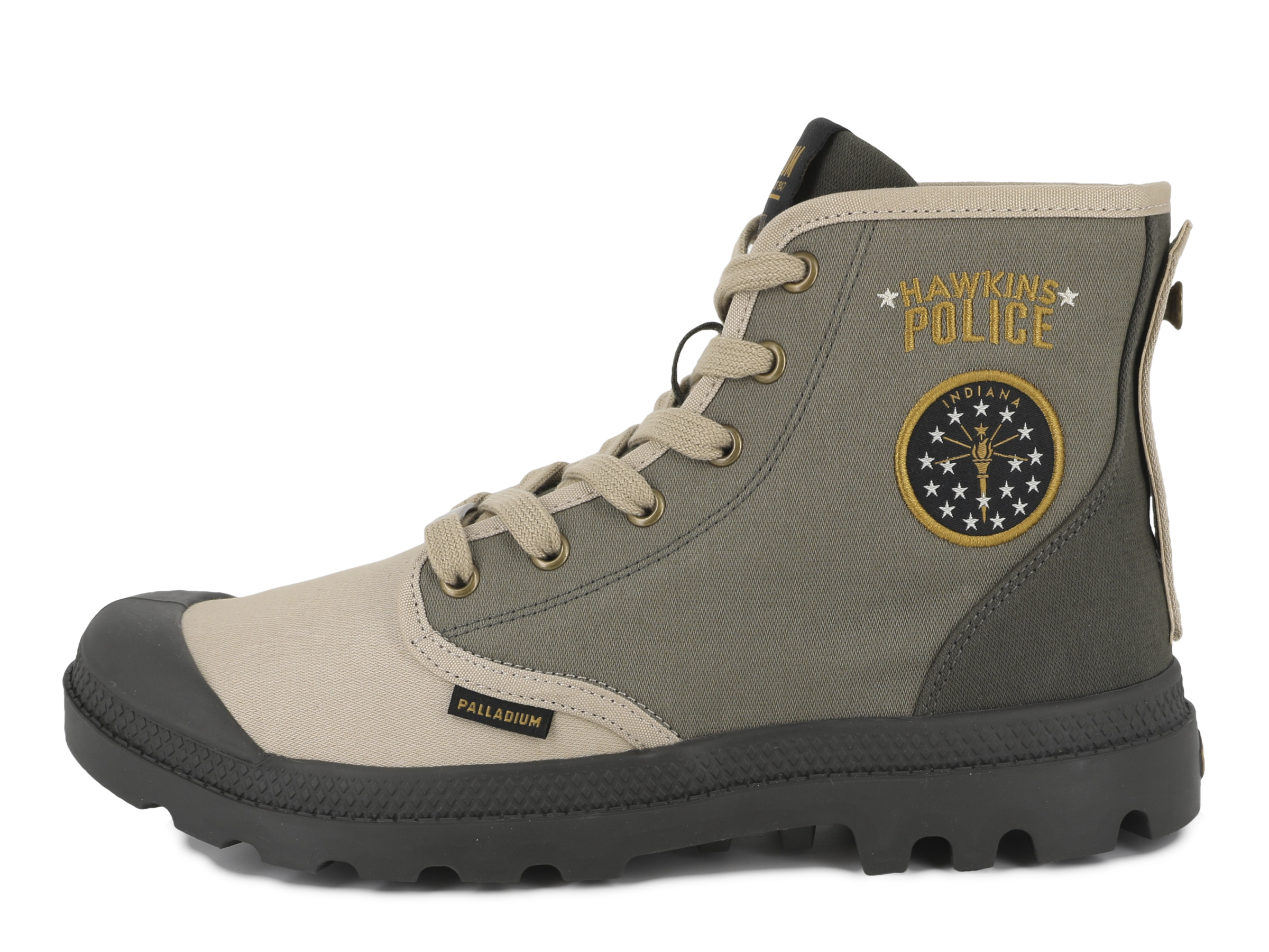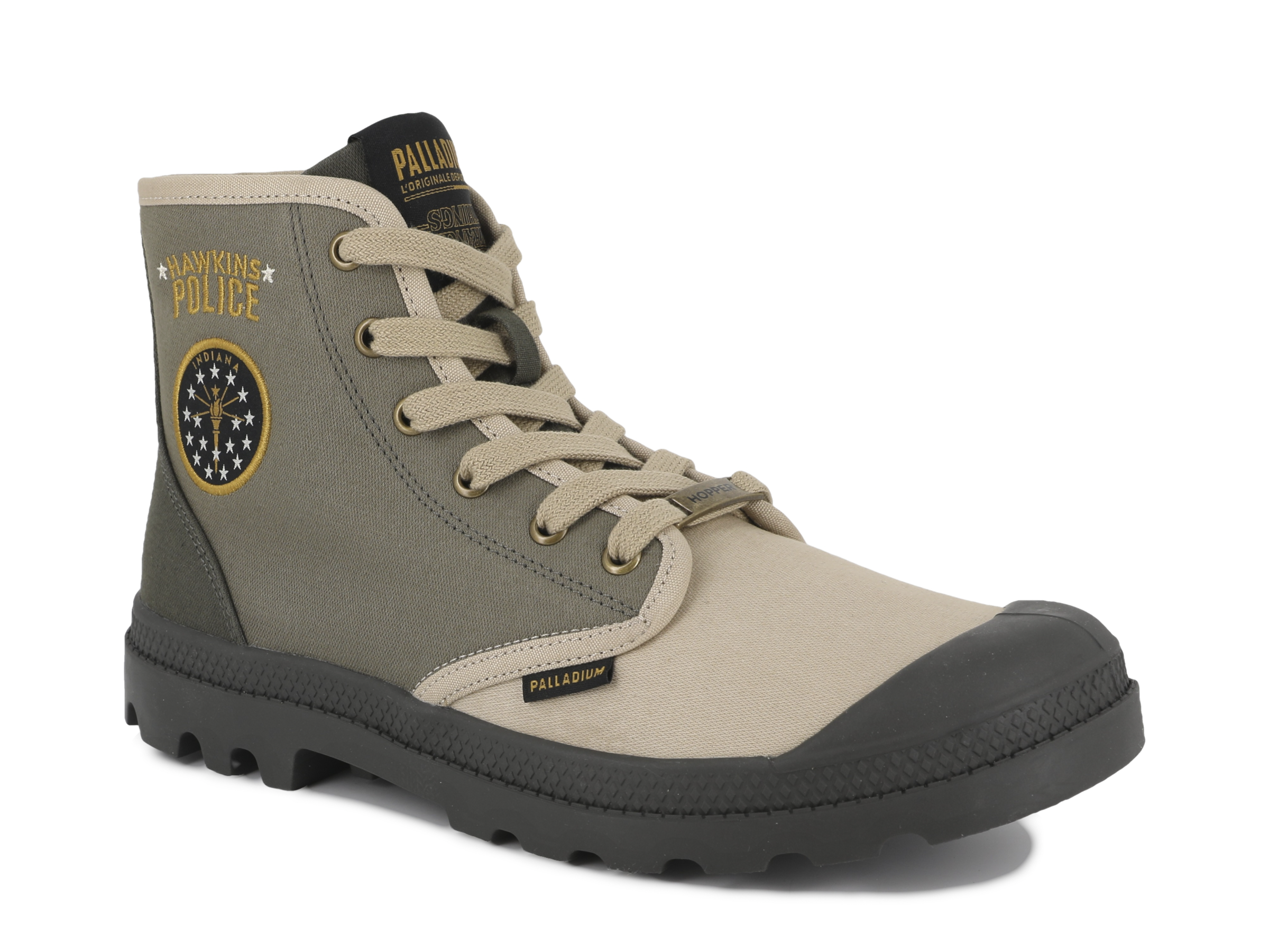 Stap in het Stranger Things-universum met de PAMPA, geïnspireerd op Chief Hopper. Organisch camo canvas, kenmerkende logo's, een knoop in uniformstijl en een goudkleurig "Hopper"-veterlabel zorgen voor een opvallende stijl, terwijl de robuuste genopte buitenzool en beschermende neus van Palladium passen bij elk avontuur, zelfs de Upside Down.