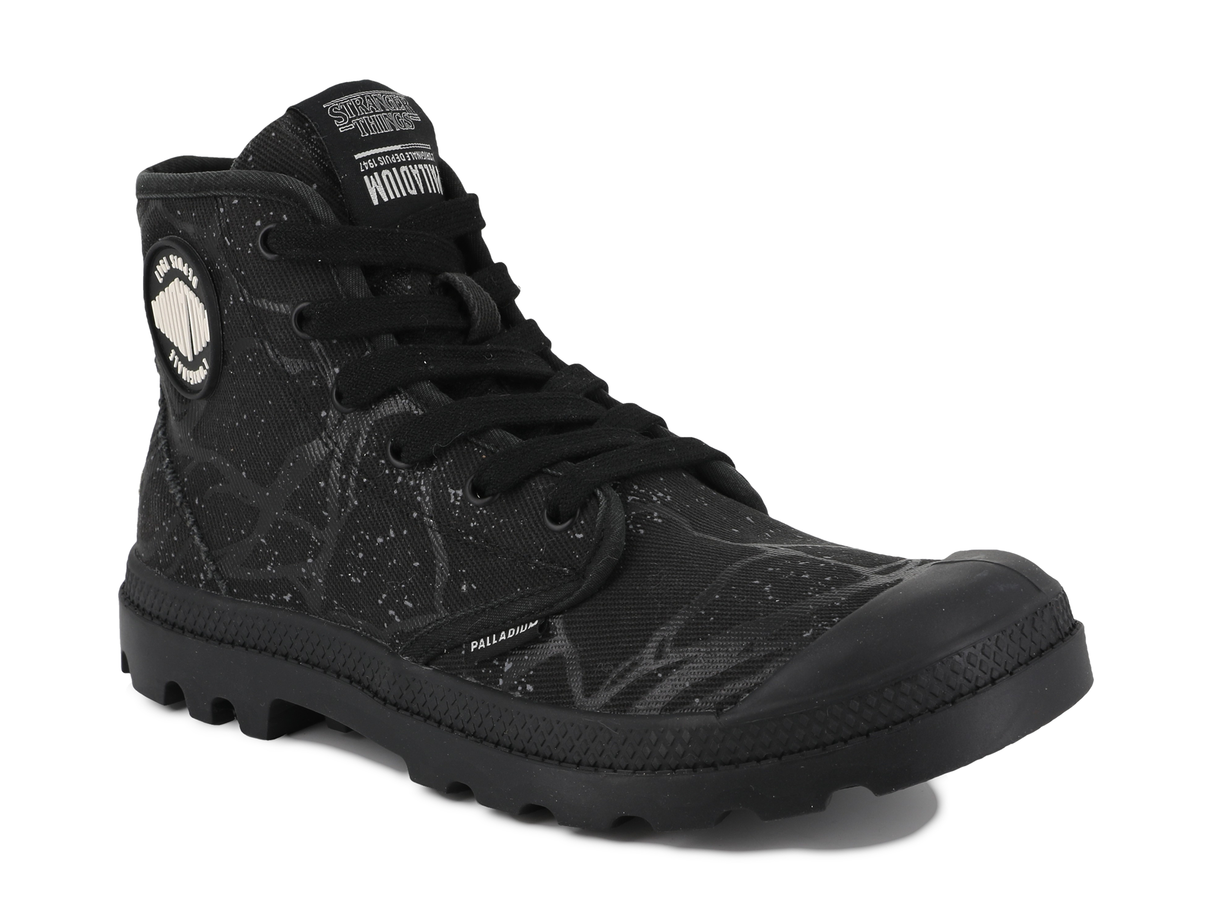 De PAMPA is geïnspireerd op Jim Hoppers reis door de Upside Down van de Stranger Things Seizoen 5 op Netflix. Stone-washed zwart canvas met afbeeldingen van wijnranken doet denken aan de tunnels van Hawkins, terwijl logodetails en de slogan "One Last Strange Adventure" op de hiel het laatste hoofdstuk weergeven. Afgewerkt met de iconische PAMPA rubberen buitenzool, neus en duurzame noppen, geschikt voor elk terrein.