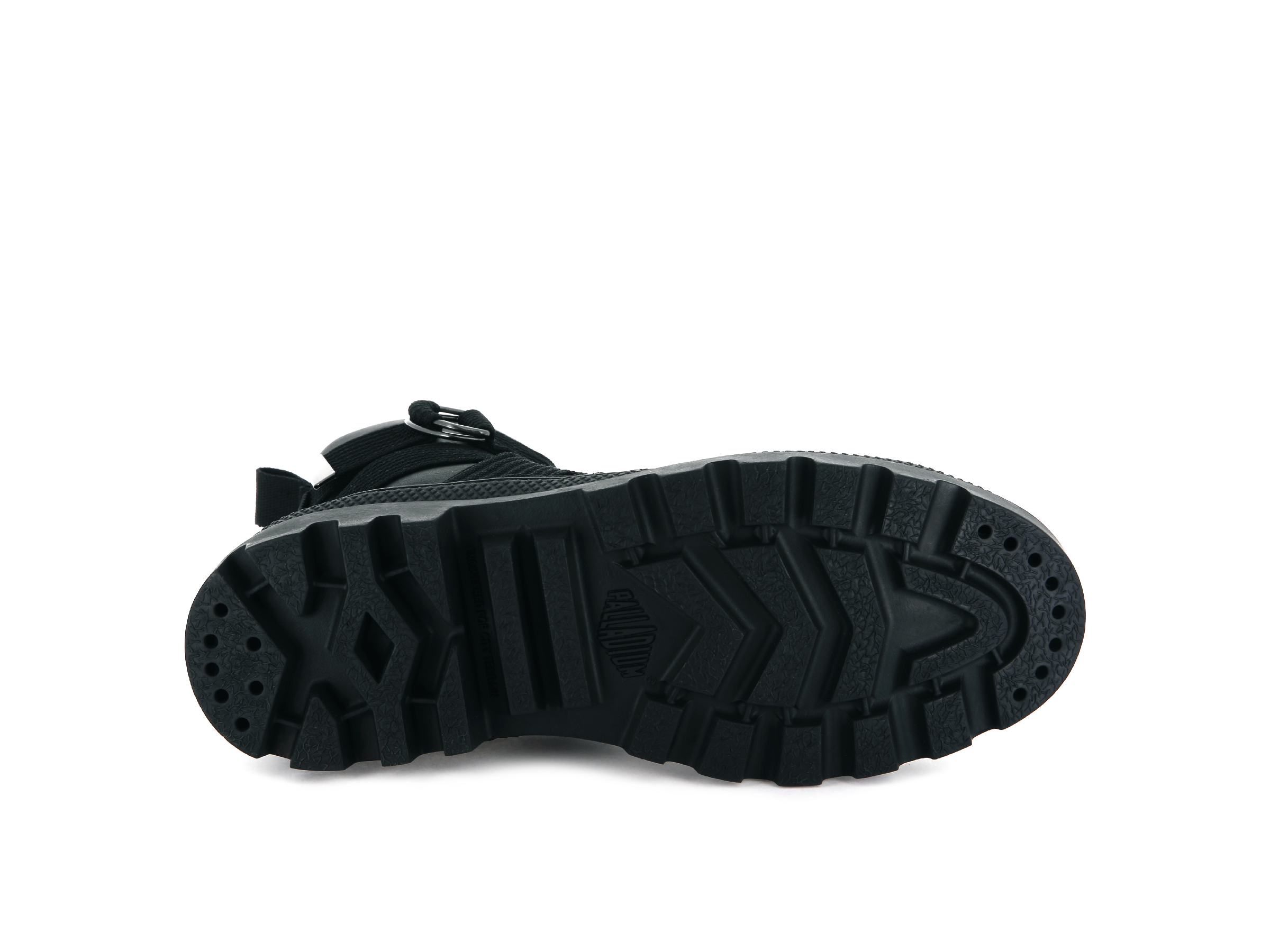 • MARQUAGE : étiquette tissée sur le côté de la languette / logo brodé sur le quartier externe / tirette de fermeture éclair Palladium / logo GPS imprimé sur la doublure de la languette