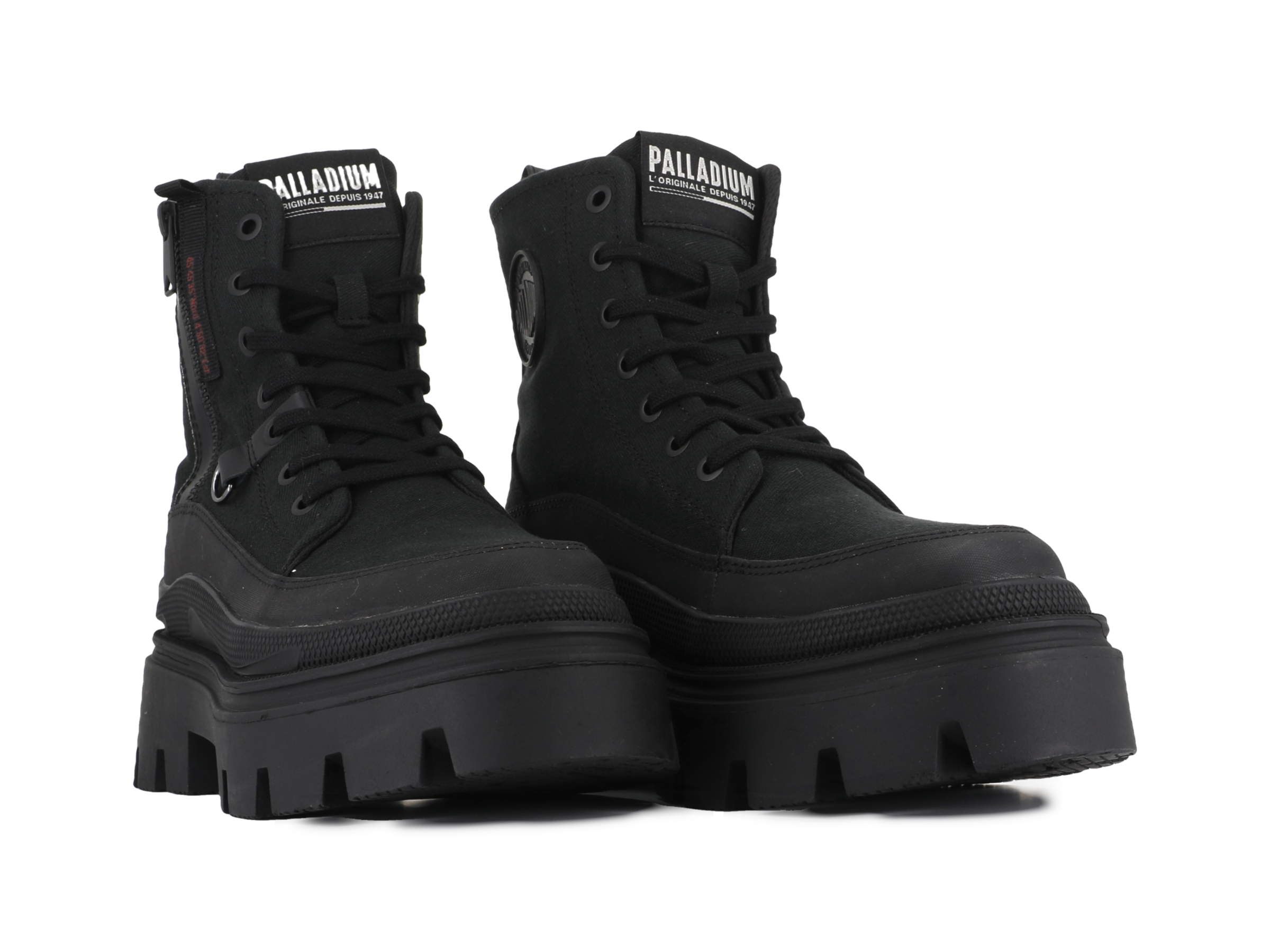 Bold, urban, and unapologetically French. This chunky women's boot fuses streetwear edge with outdoor-ready comfort. Built with a rugged rubber outsole and EVA cushioning, it features durable twill canvas, a rubber mudguard, and standout zip-and-buckle details. Finished with striking red accents, the Pallasquad Zip TX is made for those who walk their own path—with style.