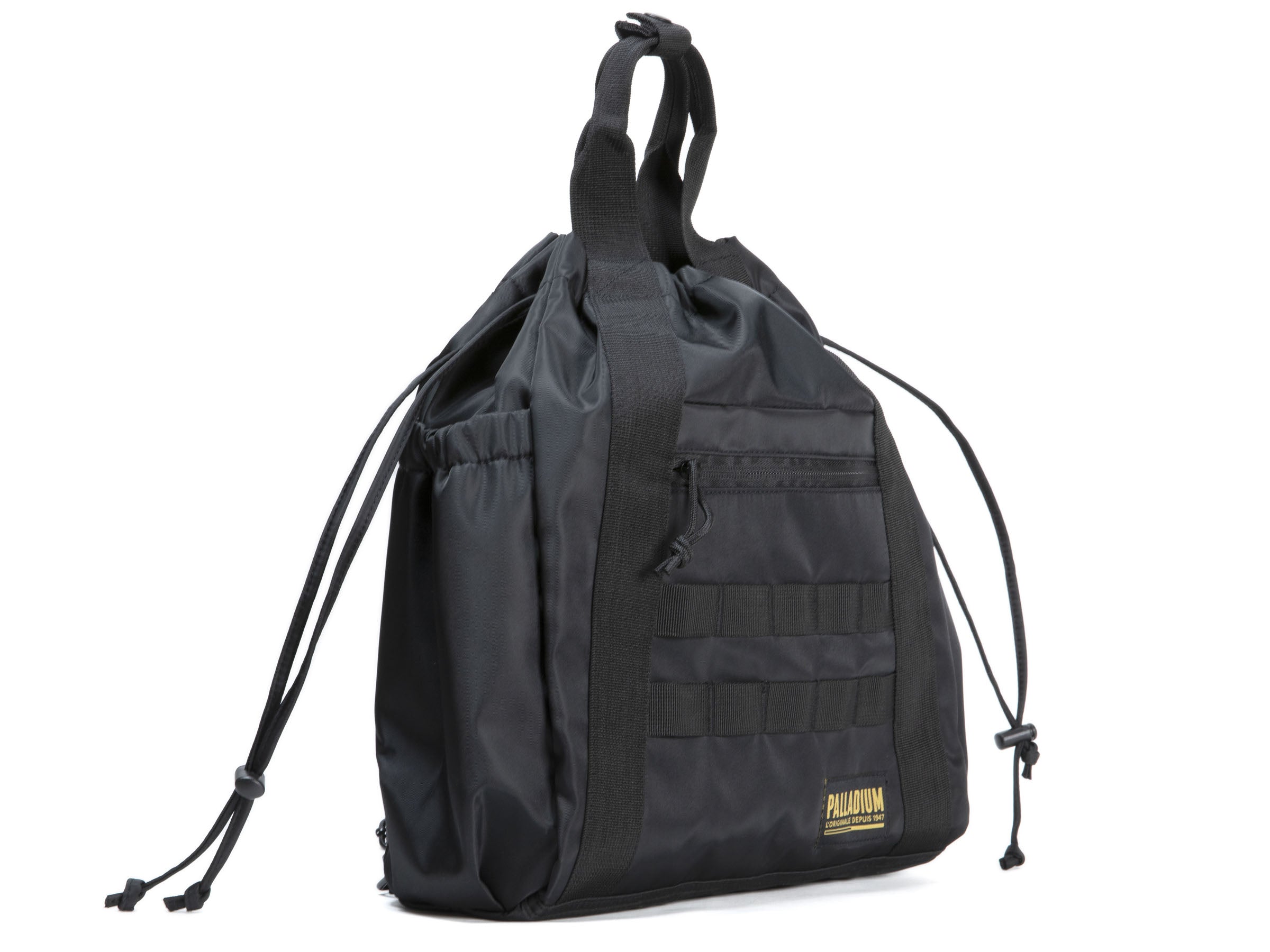 The Totebag is the hybrid mix of a backpack and a totebag, on one single easy-to-wear bag. The handles allow you to carry it by hand while you can also chose to put it on your back with the 2 shoulderstraps. The duffel bag closure secures the interior of the bag. In terms of functionality, the main compartment is complemented by 2 side pockets and a zippered front pocket. In soft nylon, the Totebag is a lifestyle variation of the army wardrobe, Palladium signature since 1947.